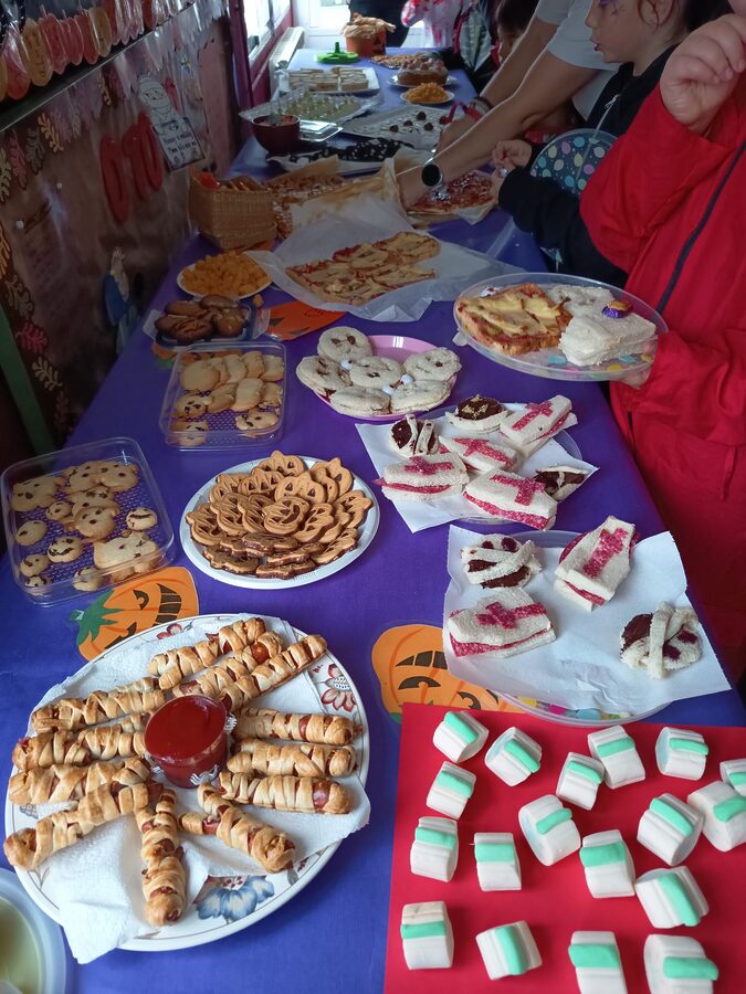 Después hemos disfrutado,junto con nuestras familias,de una merienda de susto que estaba deliciosa. Os dejamos unas fotos para que se os haga la boca agua.